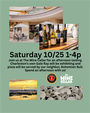 Join us for a laid-back afternoon of wine, art, and great food at The Wine Cellar! We’ll be pouring 4–5 delicious wines for you to taste while enjoying live art from local artist Gale Ray, whose vibrant work will be on display throughout the event. Bohemian Bull will be serving up their signature wood-fired pizzas, the perfect pairing for an easygoing weekend vibe. Come sip, mingle, and soak up the atmosphere — it’s the perfect way to spend your Saturday at The Wine Cellar!